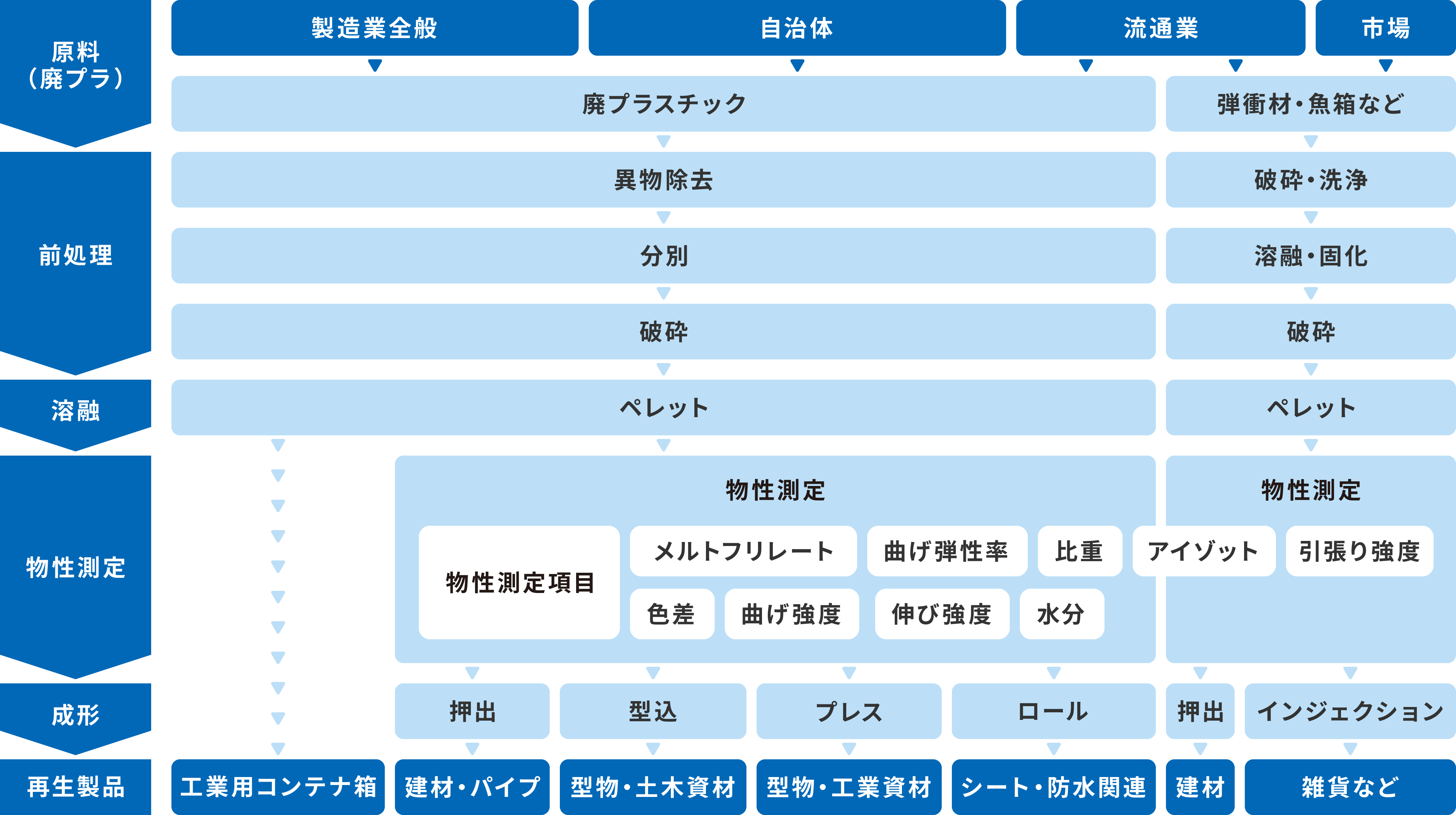 プラスチック再生加工フロー(国内・海外)